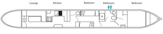 Vene on heidän "King Fisher"-mallistoa, 55 jalkaa pitkä ja noin 7 jalkaa leveä. Veneessä on makuutilat 6:lle, 2 WC:tä ja pentteri. Ulkotilat ainoastaan keulassa ja perässä. Ajonopeus noin 3-4 solmua. Tarkemmat tiedot ja kokemukset veneestämme selvinnevät heinäkuussa.