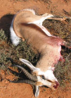 Sprinbocin erikoisuus - selkään nousee valkoinen karva, kun se kuolee ja häviää sen jälkeen. |